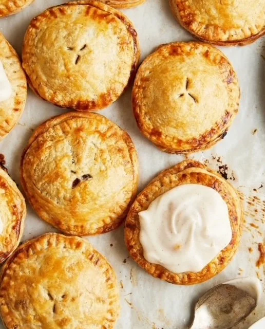 Roll the dough: On a floured surface, roll chilled dough to about 1/8" thick. Cut into 4–5 inch rounds or rectangles (use a biscuit cutter or a knife/bench scraper. Cut vent “X” in each top side.